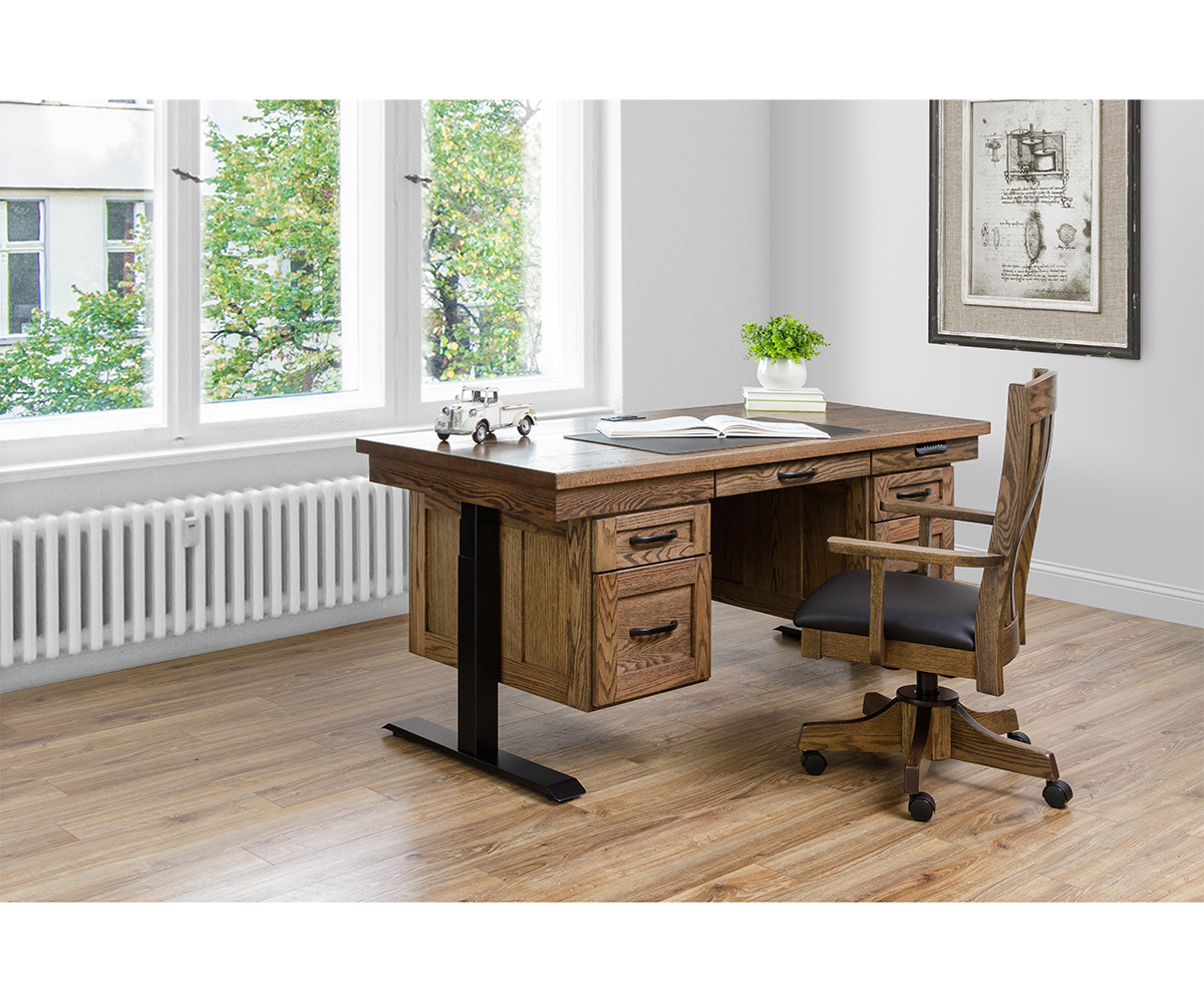 • Solid wood desktop with furniture grade veneer-core panels for less weight
